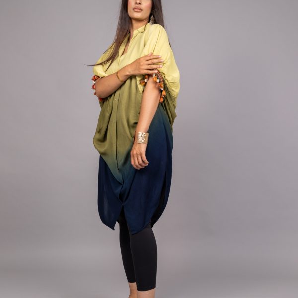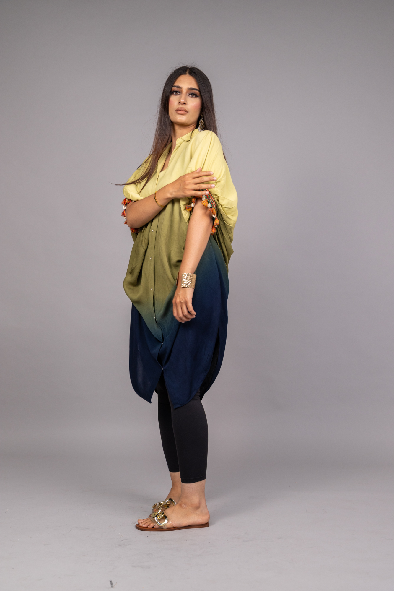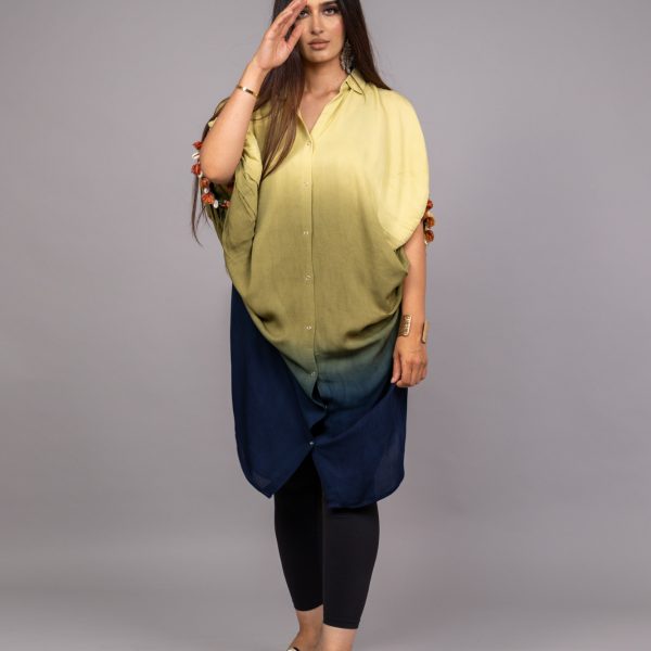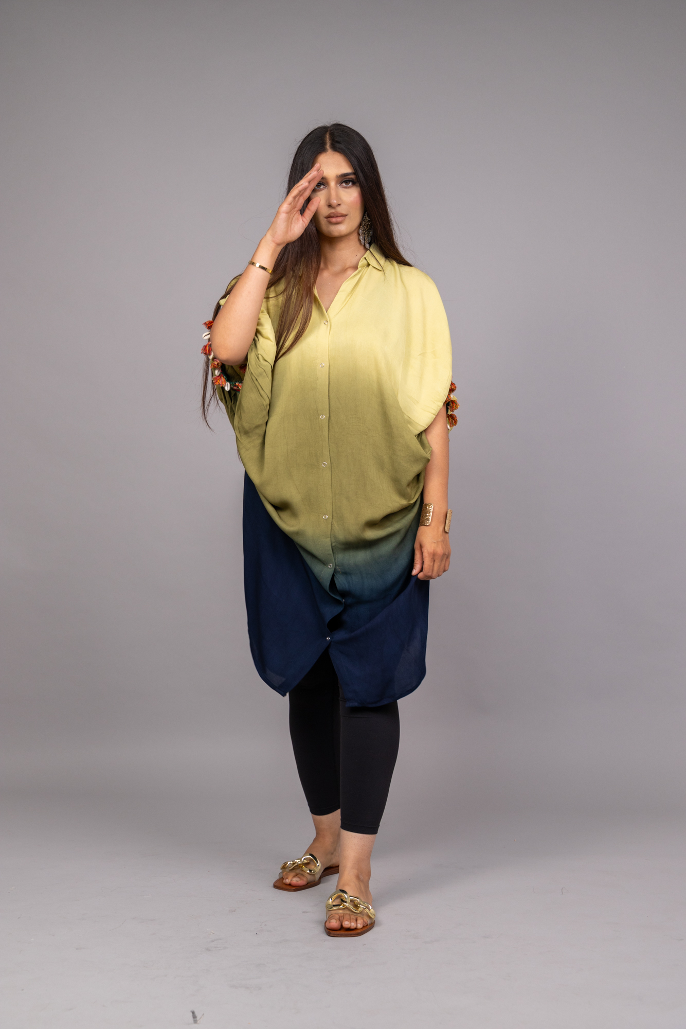 Whisk yourself to a tropical state of mind with this stylish ombre shirt! Would fit from a size 6-14