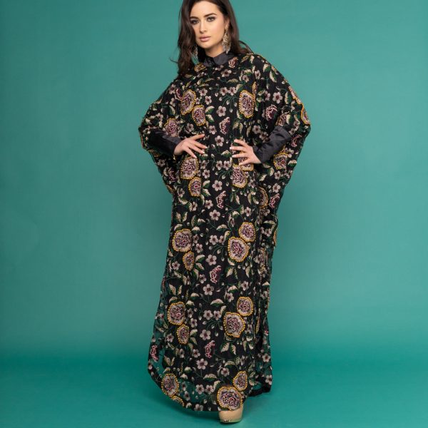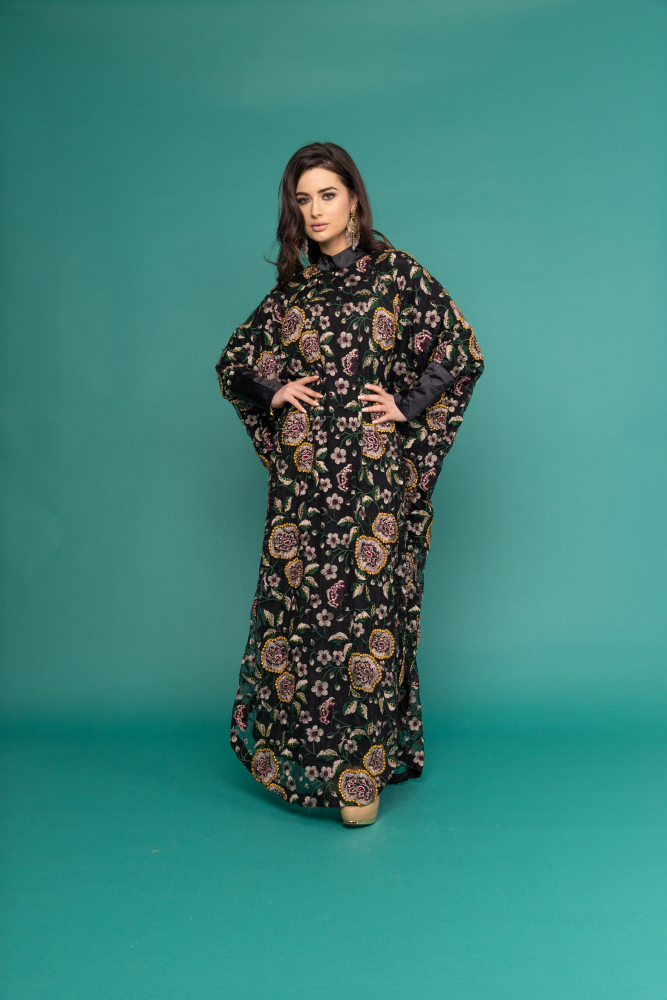 This sophisticated heavy stone work kaftan! Fully lined, free size and perfect for any occasion!