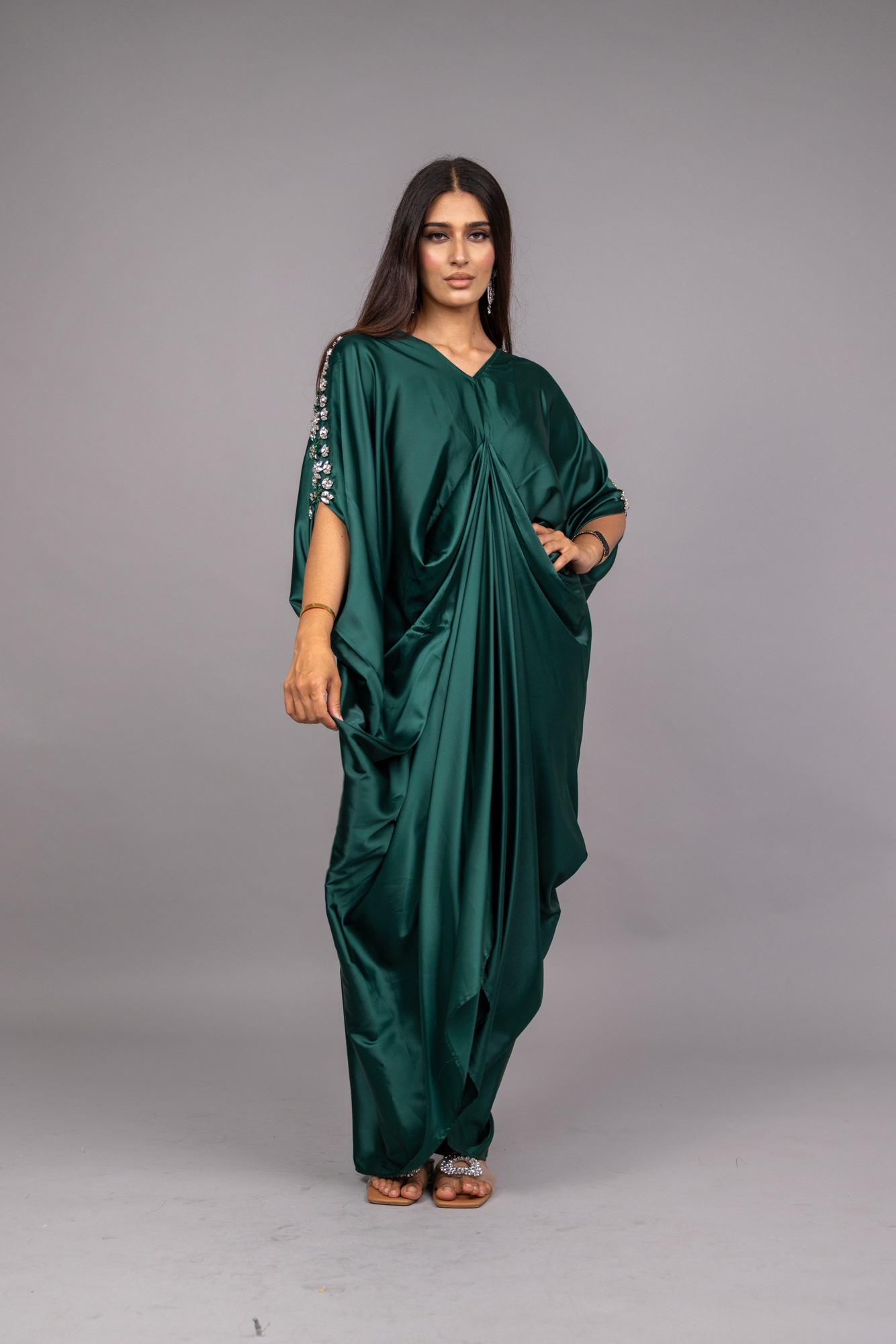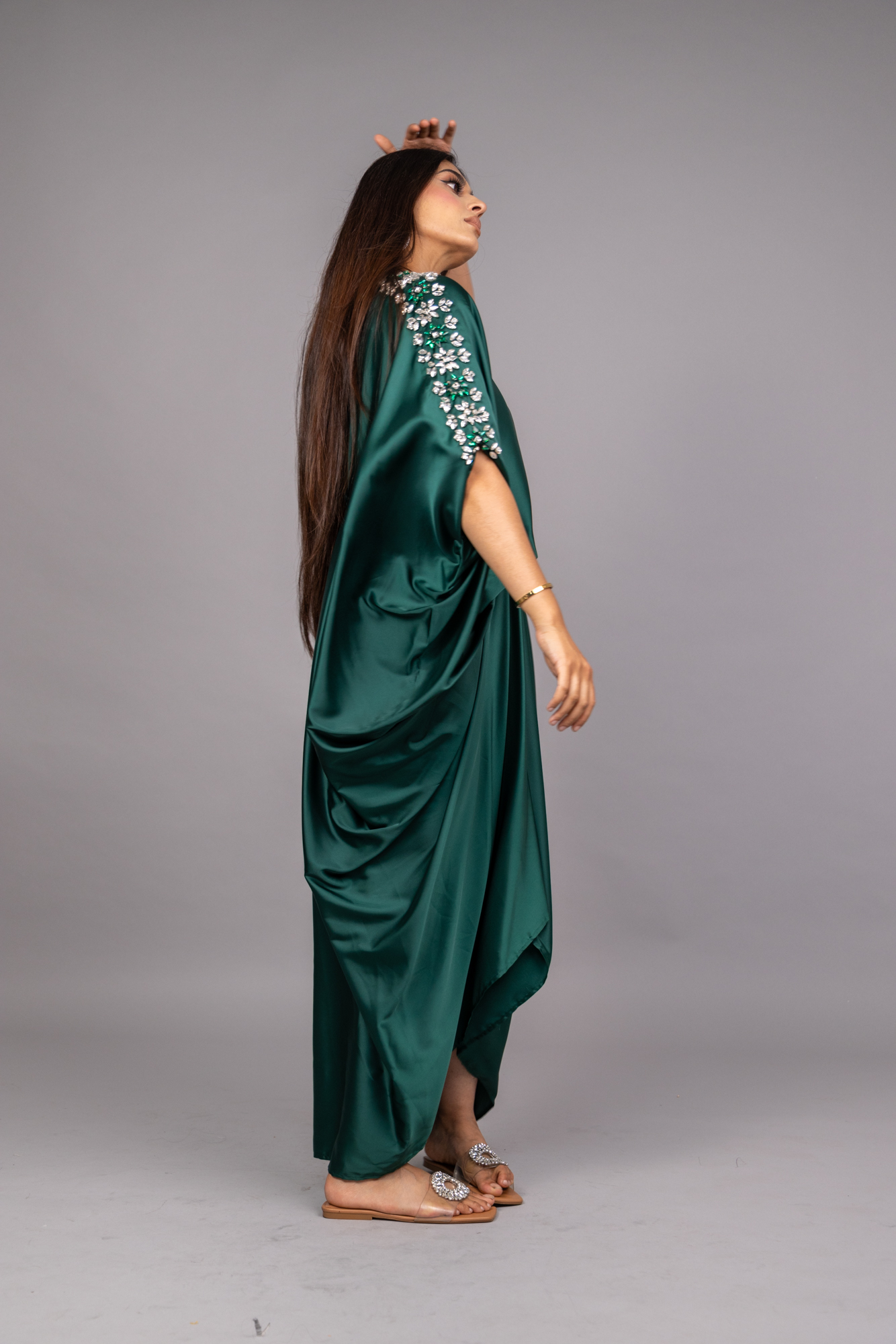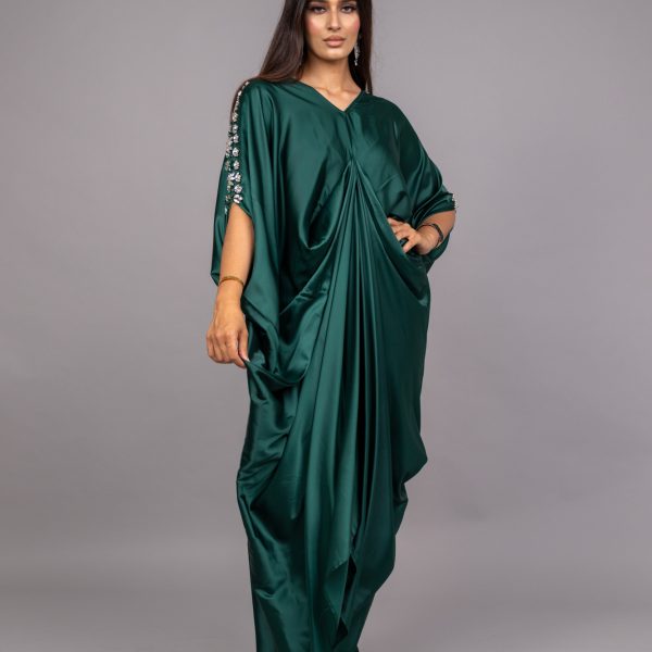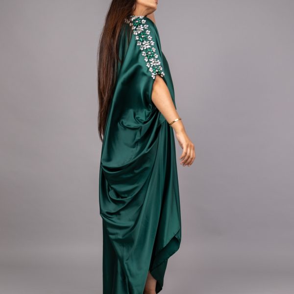 Made from the finest fluid fabric, this drape kaftan is suitable for any occasion! With heavy stonework on the shoulders, free size.