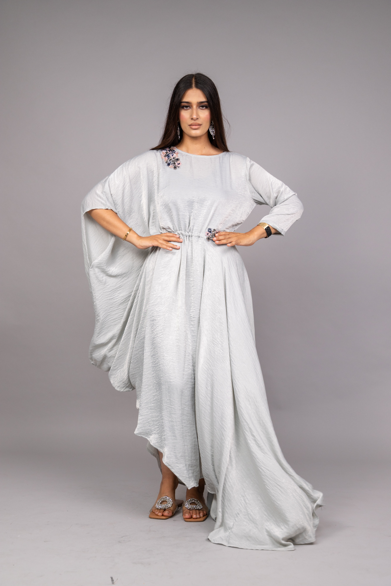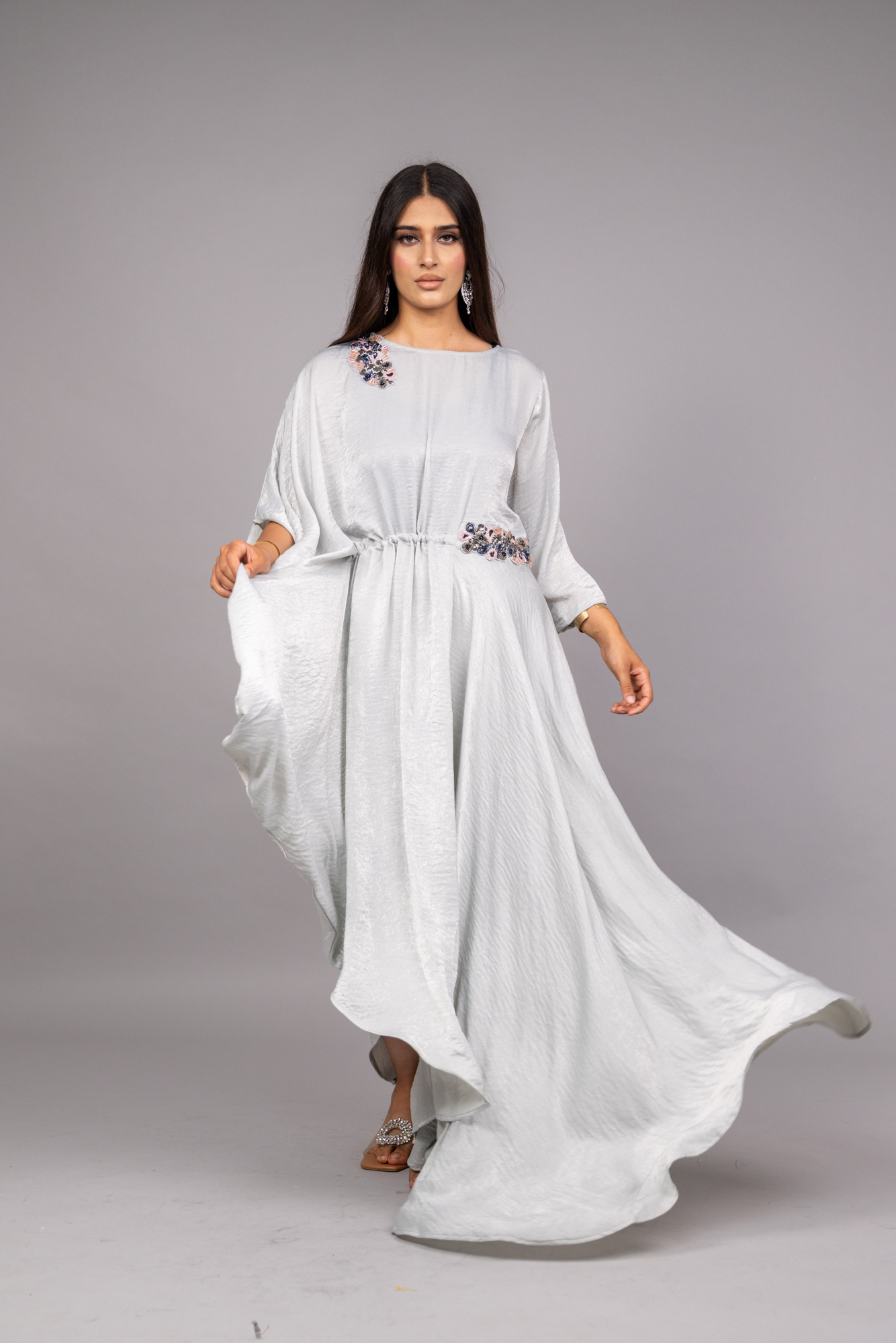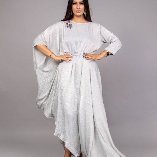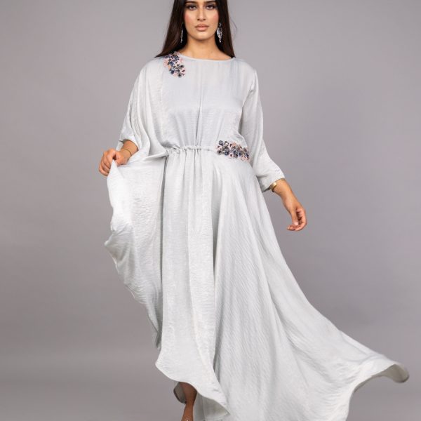 A blend of elegance and modesty! Free size dress with embroidery! Perfect for any occasion