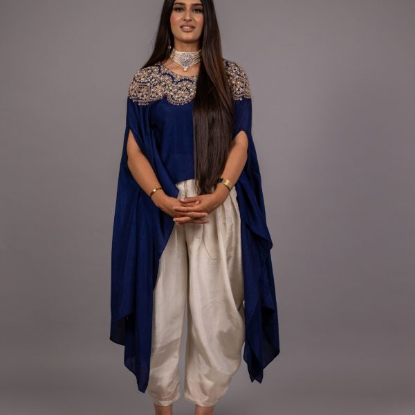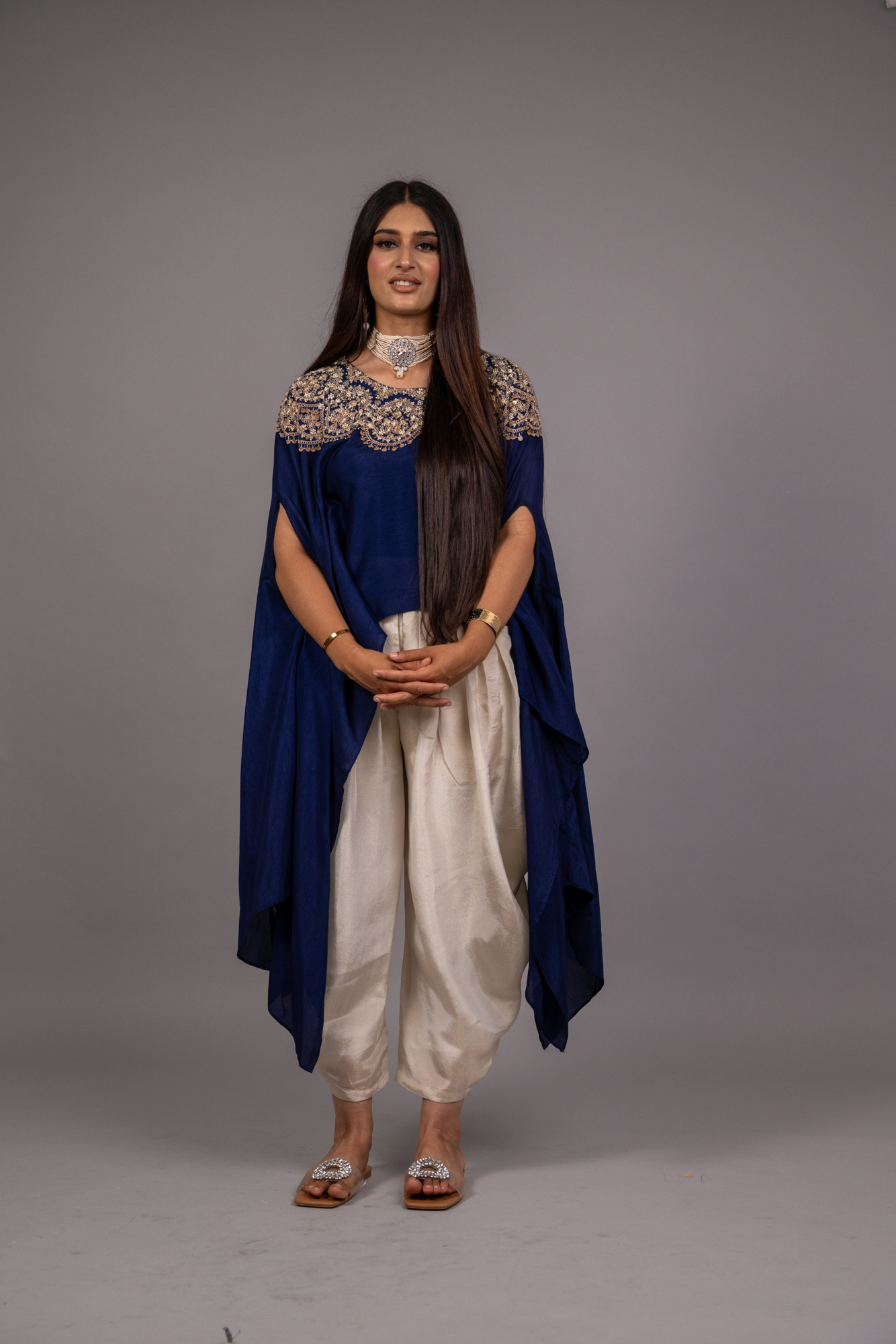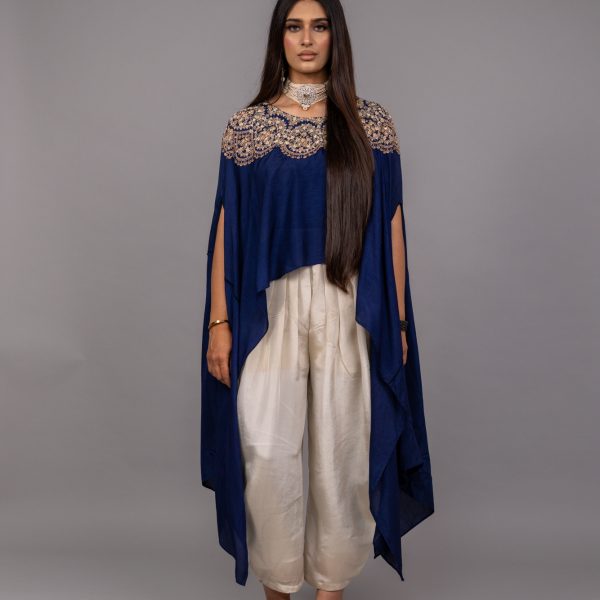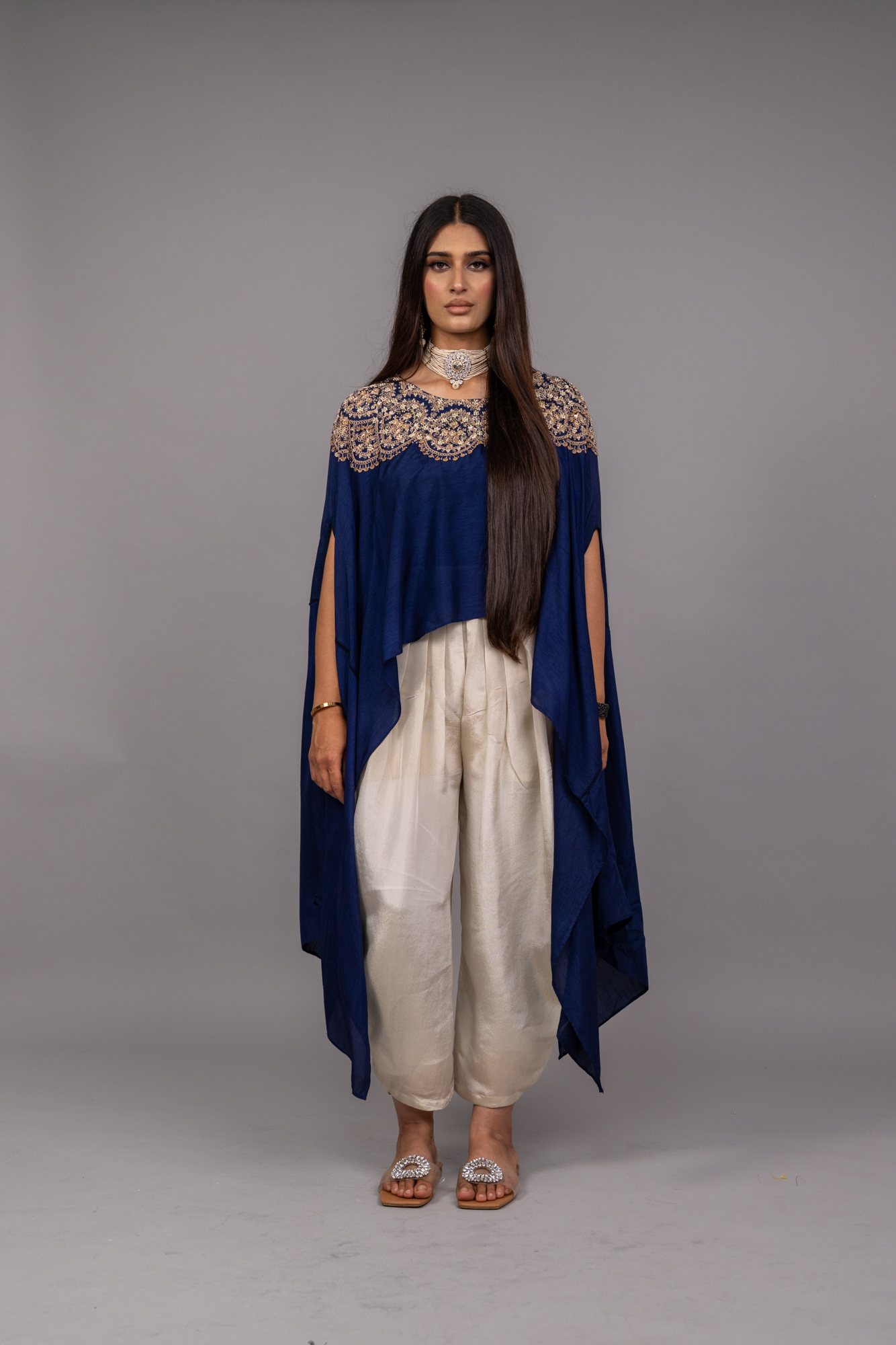 Indulge in luxury with this heavy embellished neck cape and trousers! Free size